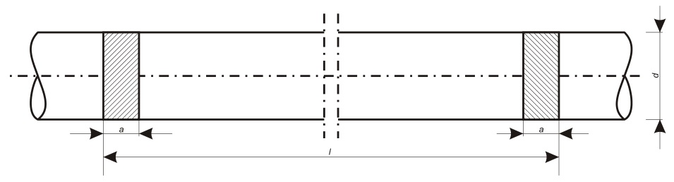 | Pipeline diameter (d) | Tape width (a) | Label height (b) | Spaces between tapes (lmax) |