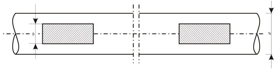| Pipeline diameter (d) | Tape width (a) | Label height (b) | Spaces between tapes (lmax) |
